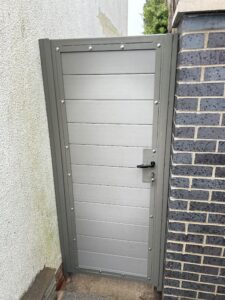 Single grey composite gate with keypad lock and padlock, fitted in Langland.  Supplied & fitted [...]