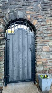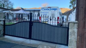 Latest NewsWrought Iron Composite Gates, Cwmavon 11 Feb Stunning set of Composite gates with Wrought Iron design, to compliment the stone wall surround. Supplied and fitted for a valued customer by the Team at Cimla Forge. External Metal Staircase, Cimla. Wrought Iron Wood infill Gates, Lydney
